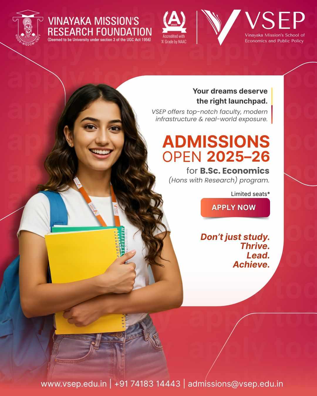#VSEP #Admissions2025 #EconomicsHonours #FutureEconomist #PolicyMeetsPurpose #HigherEducation #StudyInIndia #ChennaiStudents #ResearchDriven #ApplyNow